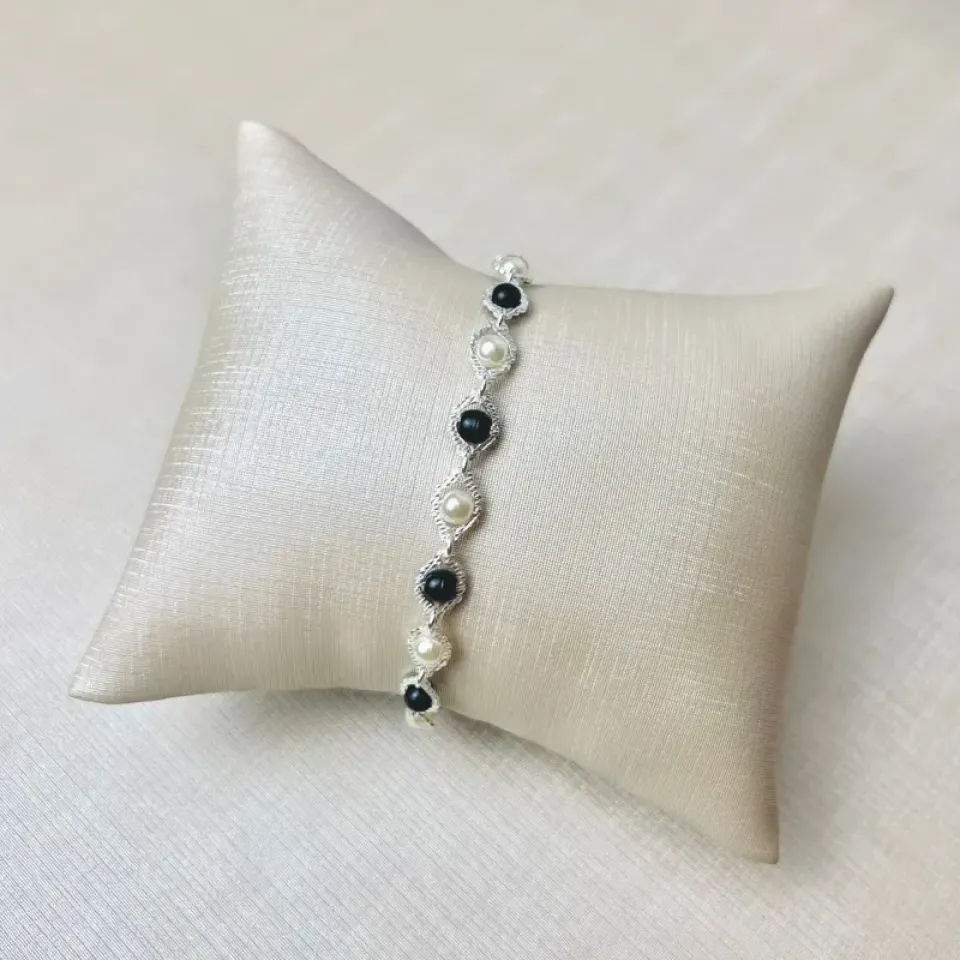 Pulseira Pérola Branca e Negra Banhada a PrataConfira opiniões e avaliações de clientes!