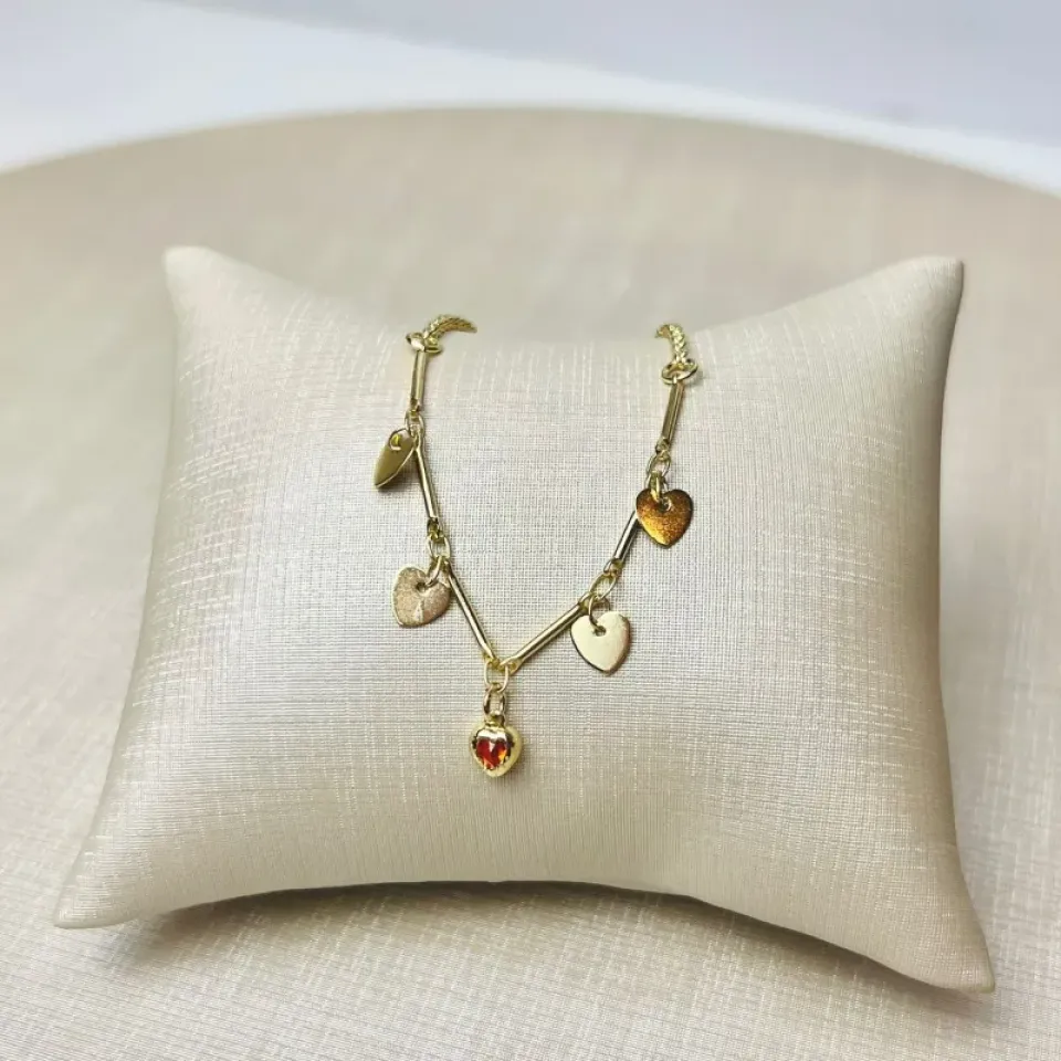Tornozeleira Corações Pedra Vermelha Banhada a OuroConfira opiniões e avaliações de clientes!
