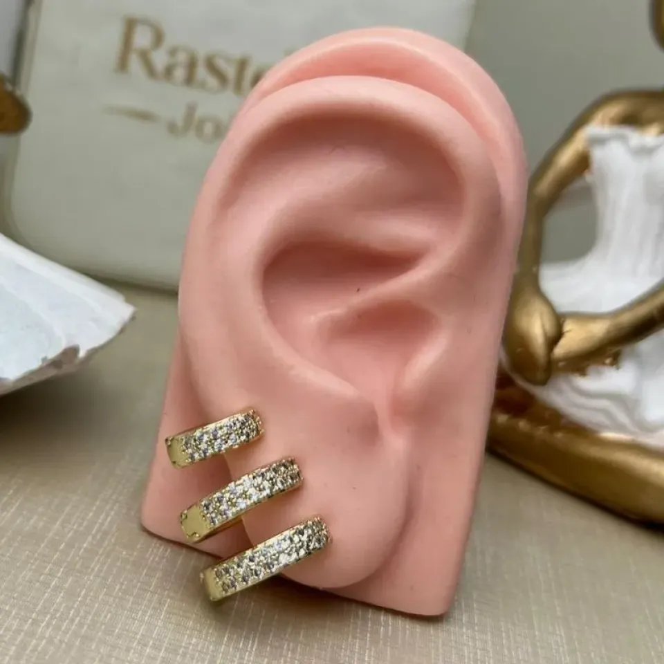 Trio Argola Cravejada Banhado a OuroConfira opiniões e avaliações de clientes!