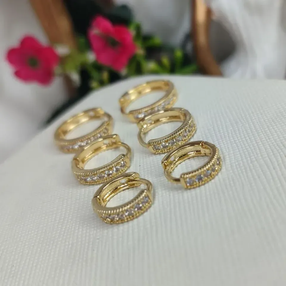 Trio Argola Cravejada Banhado a OuroConfira opiniões e avaliações de clientes!