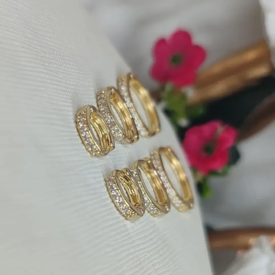 Trio Argola Cravejada Banhado a OuroConfira opiniões e avaliações de clientes!