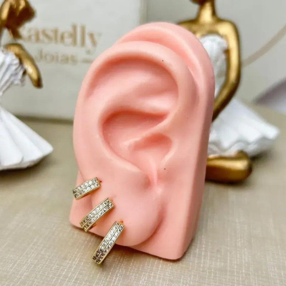 Trio Argola Cravejada Banhado a OuroConfira opiniões e avaliações de clientes!